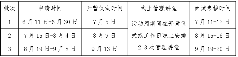 3.夏令营活动分三批次进行。每批次资格审核通过的营员须通过MBA教育中心网站查看当次夏令营活动通知,并按通知要求参加夏令营各项活动。