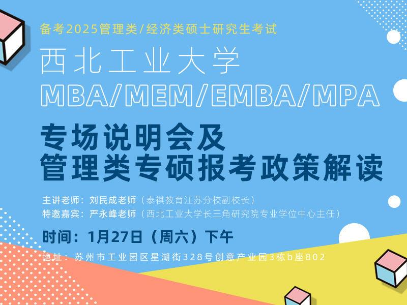 1月27日(周六)下午13:00-13:40 西北工业大学MBA/EMBA/MEM/MPA项目说明会